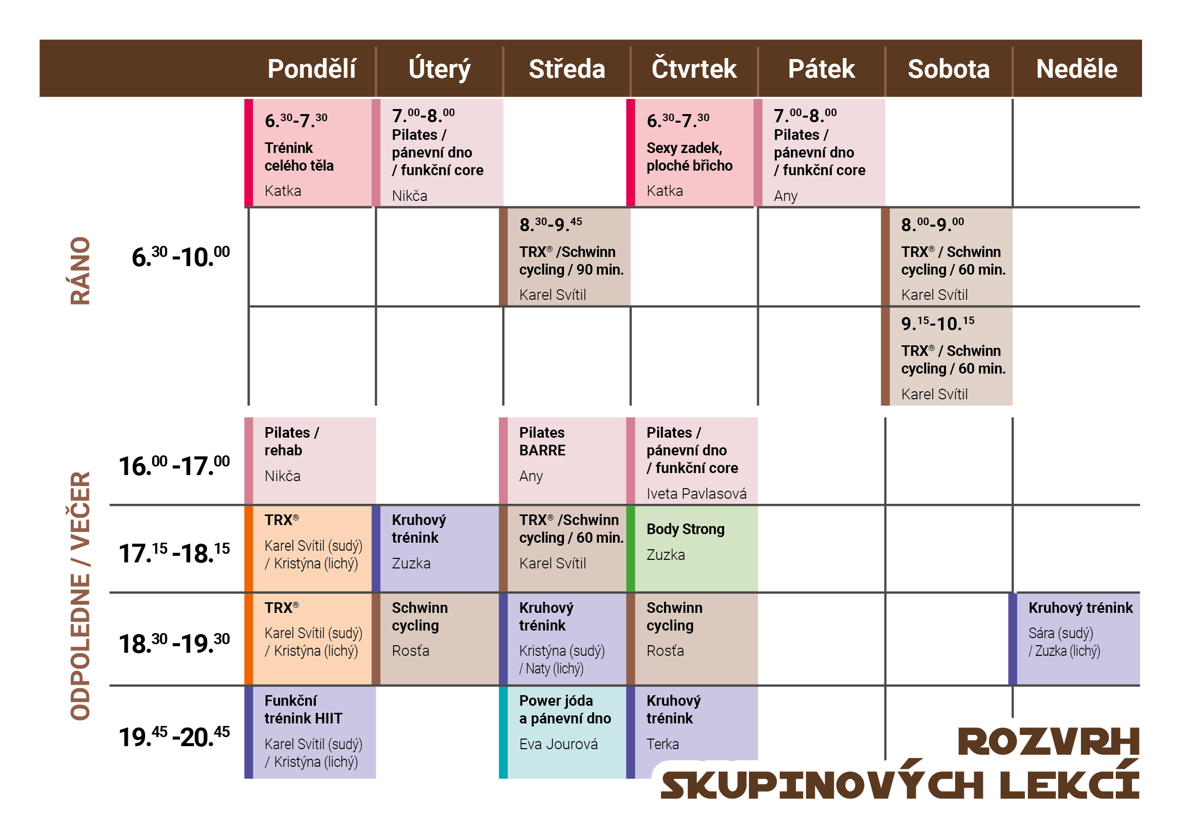 Rozvrh cvičení